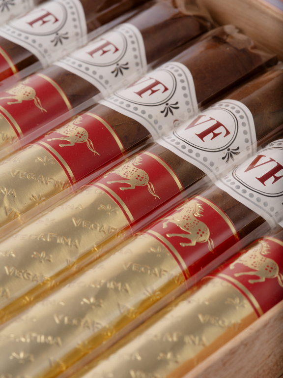 Glückszahl Acht in der chinesischen Kultur. Die Cigarren tragen den neuen VegaFina-Hauptring, ergänzt durch einen roten Ring und eine goldene Banderole, die den erlesenen Charakter dieser